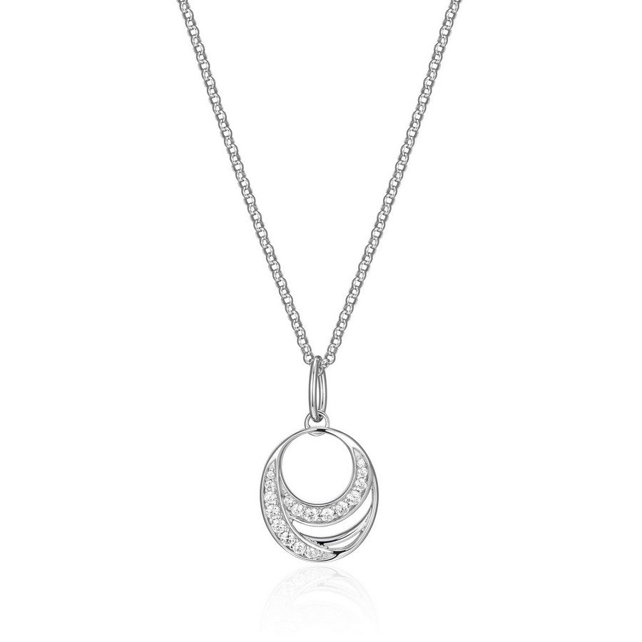 Elle Rhodium Plated Oval Double Swirl CZ Necklace