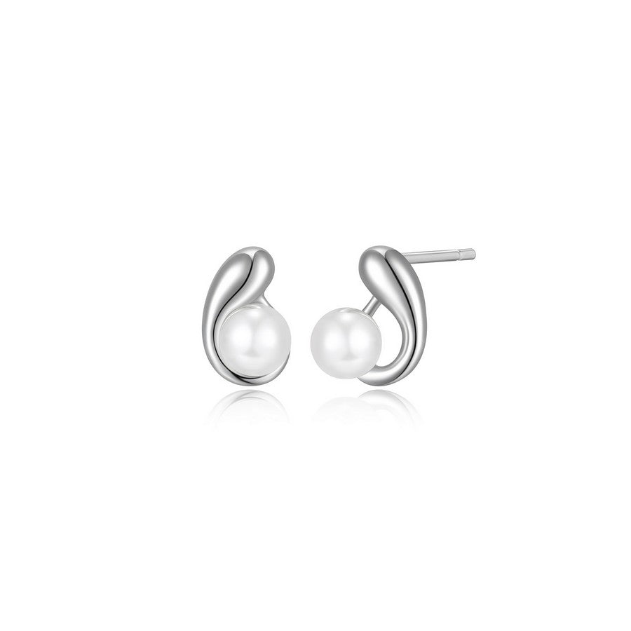 Elle Oval White Pearl and Silver Bead Drop Earrings