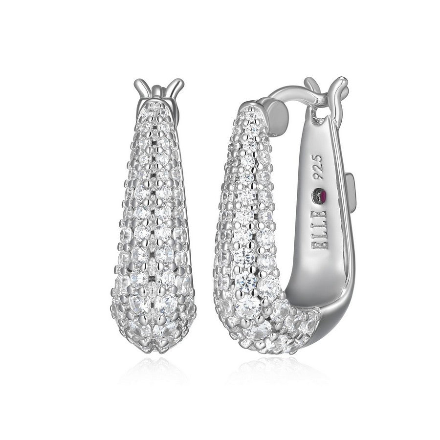 Elle Rhodium Plated Pave CZ Oblong Hoop