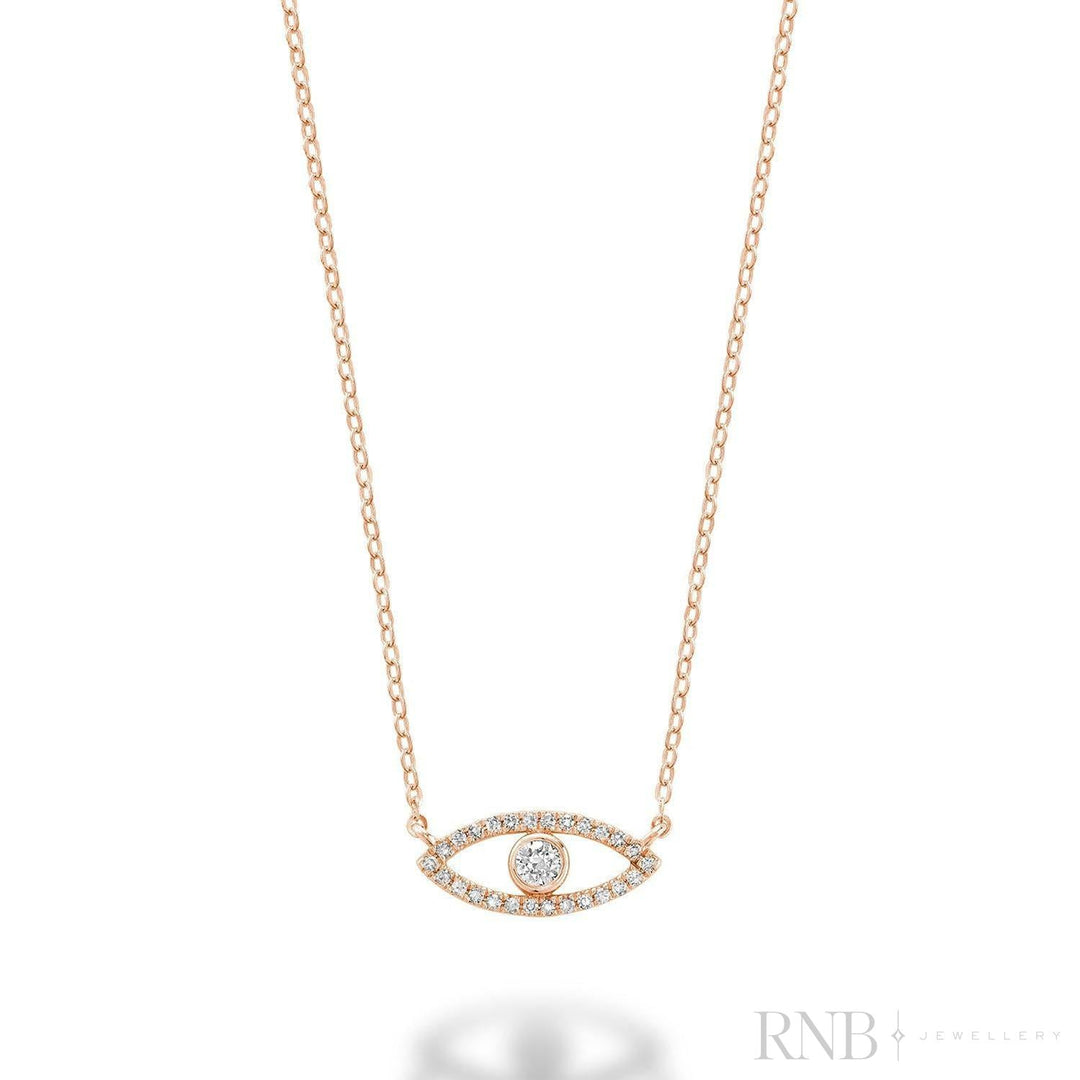 14k Rose Gold Natural Diamond Evil Eye Necklace