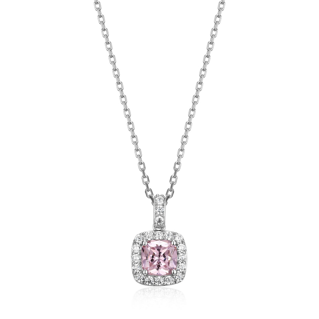 Elle Cushion Pink CZ Halo Necklace