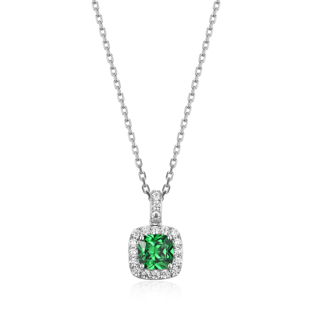 Elle Cushion Green CZ Halo Necklace